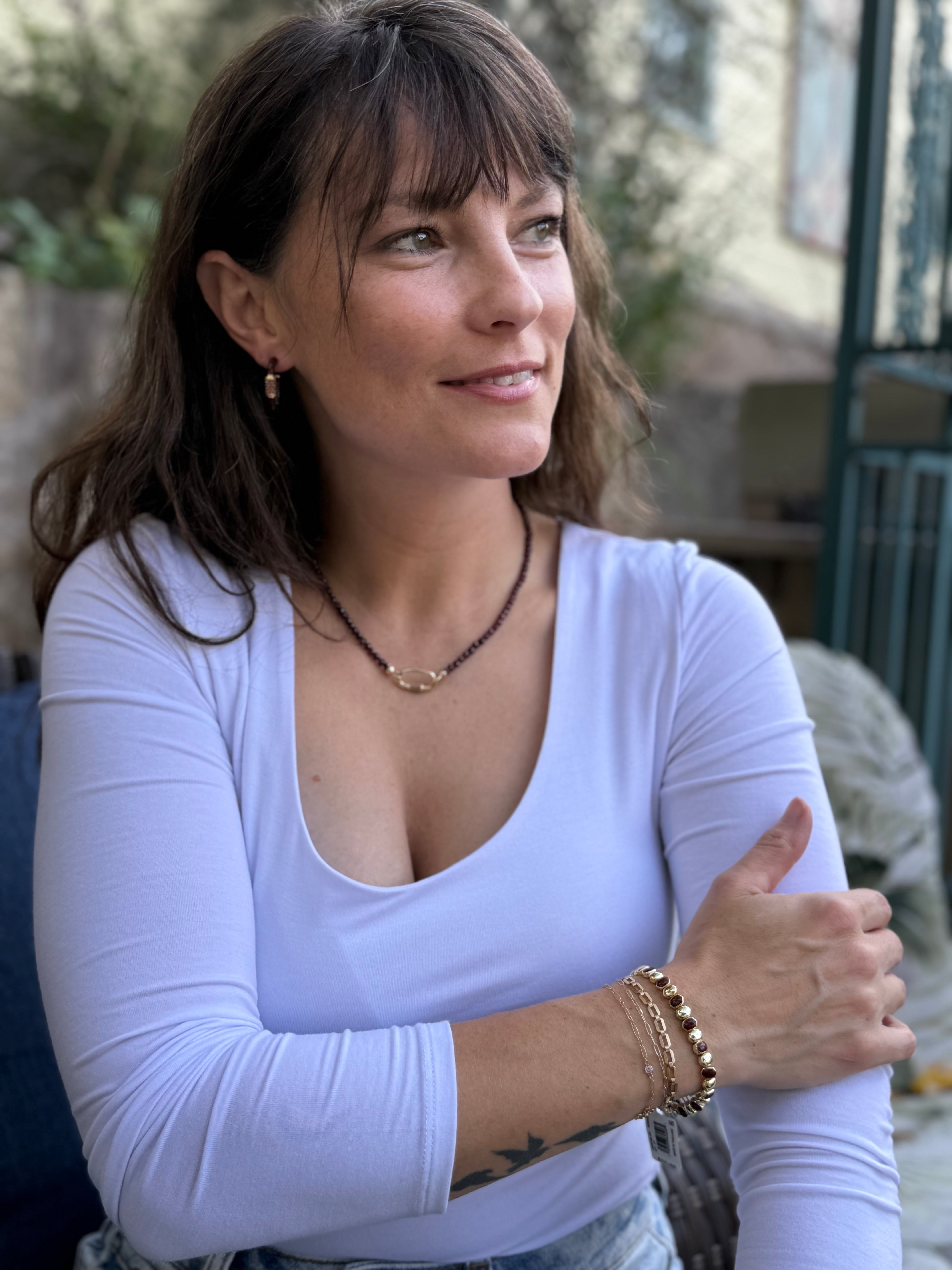 Your next bracelet stack essential has arrived! Meet the Daphne Enamel Gold Stretch Bracelet. This versatile stretch bracelet features a dainty take on our Daphne shape, with links alternating between high-shine metal and hand-painted enamel. Get ready to catch a lot of compliments with this one—it’s the perfect mix of fashion and fun.