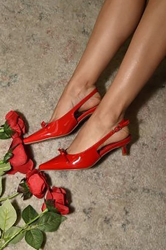 Classic, confident, and effortlessly romantic — the Written in Red Slingback Heels are the finishing touch your outfit’s been waiting for. Designed with a sleek pointed toe and a delicate kitten heel, these slingbacks bring just the right balance of elegance and comfort.